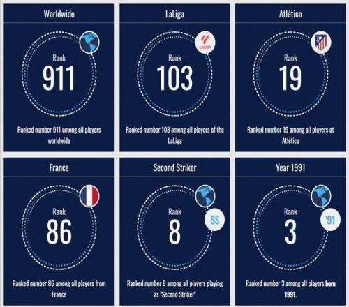 格列茲曼今年34歲,在所有1991年出生的球員中身價(jià)排名第三,僅次于范戴克和德布勞內(nèi)。