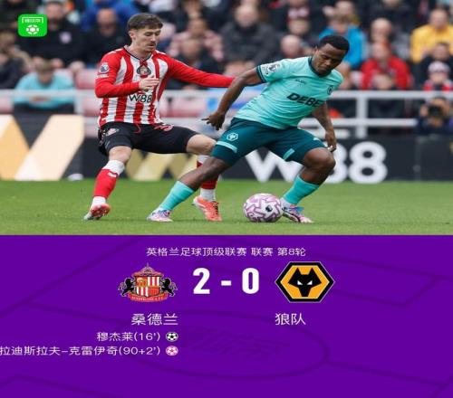北京時(shí)間10月18日,英格蘭足球超級(jí)聯(lián)賽第8輪展開(kāi)較量,桑德蘭坐鎮(zhèn)主場(chǎng)迎戰(zhàn)狼隊(duì)。比賽中,休姆送出精準(zhǔn)助攻,穆杰萊接球后冷靜施射破門,為桑德蘭取得領(lǐng)先。下半場(chǎng)補(bǔ)時(shí)階段,狼隊(duì)球員拉迪斯拉夫-克雷伊奇不慎將球打入自家球門,進(jìn)一步擴(kuò)大了主隊(duì)優(yōu)勢(shì)。最終,桑德蘭以2比0戰(zhàn)勝狼隊(duì),全取三分。