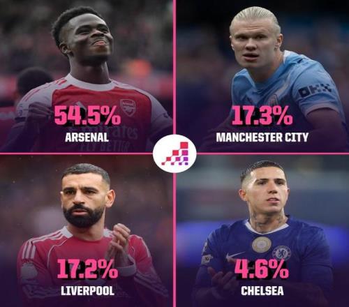 大結局Opta預測英超冠軍:槍手54.5%斷層領跑,曼城17.3%第二