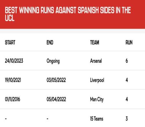 而他們完全有可能繼續(xù)擴(kuò)大這一戰(zhàn)果。在阿森納之前,利物浦和曼城曾先后做到連續(xù)4次擊敗西甲球隊(duì)。另有15支球隊(duì)對西甲球隊(duì)保持3連勝的記錄。