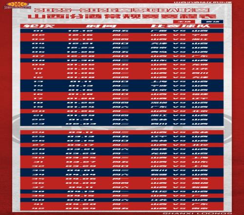 20252026賽季CBA聯(lián)賽山西汾酒男籃賽程發(fā)布