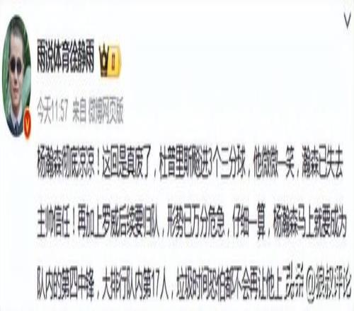嘴皮子一上一下當(dāng)然會吃到流量,但反而小楊現(xiàn)在經(jīng)歷的,不管是好是壞,至少都是中國籃球邁出的重要一步”。