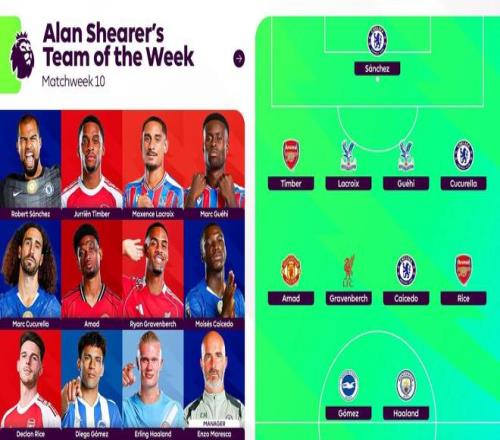 希勒評英超第10輪最佳陣:哈蘭德、切爾西3人、阿森納2人在列