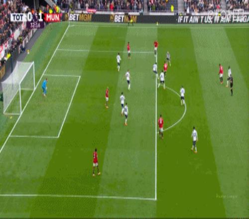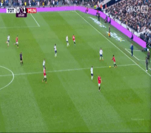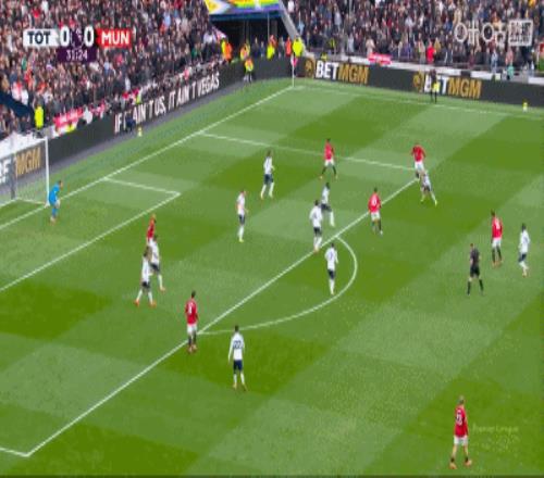 第32分鐘,阿馬德送傳中,姆伯莫原地頂頭球破門,曼聯(lián)1-0領(lǐng)先熱刺!