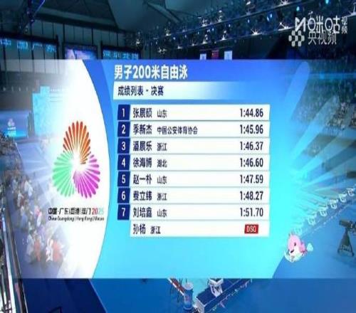 全運(yùn)會(huì)男子200米自由泳:張展碩奪冠,潘展樂第三、孫楊犯規(guī)
