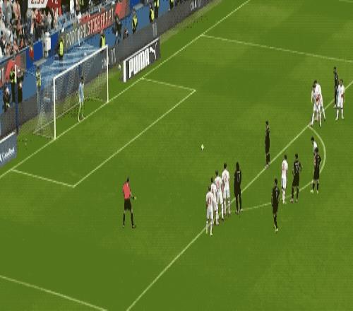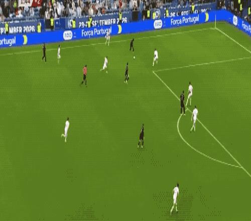 第41分鐘,葡萄牙獲得前場(chǎng)位置不錯(cuò)的任意球,C羅停賽,若昂·內(nèi)維斯操刀主罰,皮球滑過一道美妙的弧線,直掛死角。
