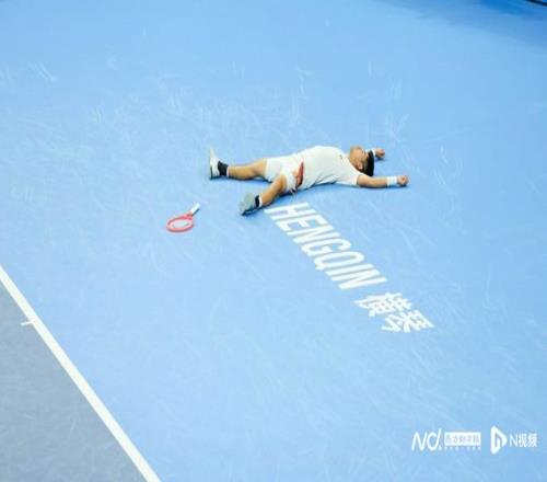 取得勝利后,吳易昺激動(dòng)倒地。