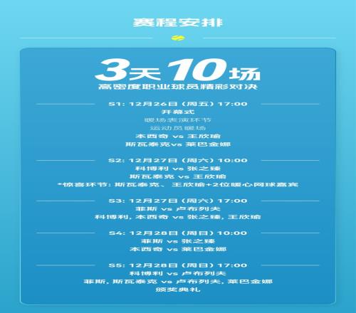 首屆世界網(wǎng)球洲際對(duì)抗賽(WTCC)球星陣容堪稱豪華,其星光璀璨程度成為賽事開(kāi)篇的最大亮點(diǎn),即便放在整個(gè)網(wǎng)壇表演賽的歷史長(zhǎng)河中,也堪稱極為罕見(jiàn)的頂級(jí)配置。女子球員方面,六屆大滿貫得主斯瓦泰克、溫網(wǎng)冠軍萊巴金娜、奧運(yùn)金牌得主本西奇與本土寵兒、奧運(yùn)銀牌得主王欣瑜將聯(lián)袂亮相,陣容堪比“WTA版沙特六后大滿貫”;男子球員方面,兩屆大師賽冠軍盧布列夫、奧運(yùn)銀牌得主張之臻領(lǐng)銜出戰(zhàn),近年來(lái)圈粉無(wú)數(shù)的實(shí)力新星菲斯、科博利強(qiáng)勢(shì)加盟,勢(shì)必將碰撞出不亞于拉沃爾杯的精彩火花。