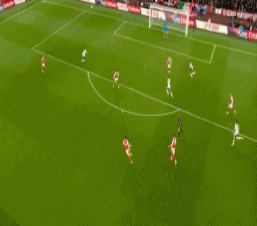 第76分鐘,特羅薩德突入禁區(qū)左肋之后無私橫傳,埃澤勁射破門,將比分擴大為4比1!在埃澤完成帽子戲法之后,阿爾特塔瘋狂慶祝!