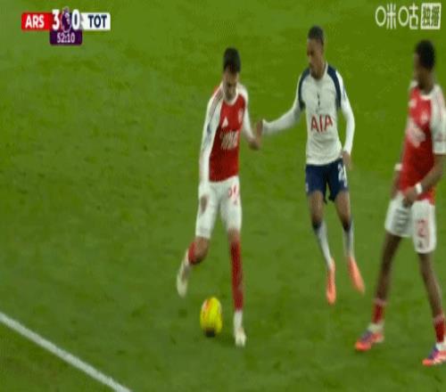第17分鐘,薩卡與烏多基激烈拼搶,隨后兩人發(fā)生口角