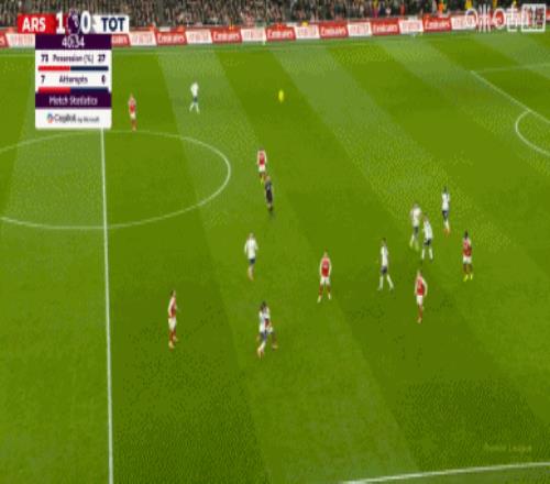 第36分鐘,接梅里諾傳球后,特羅薩德瀟灑轉(zhuǎn)身射門得手,阿森納1-0領(lǐng)先!