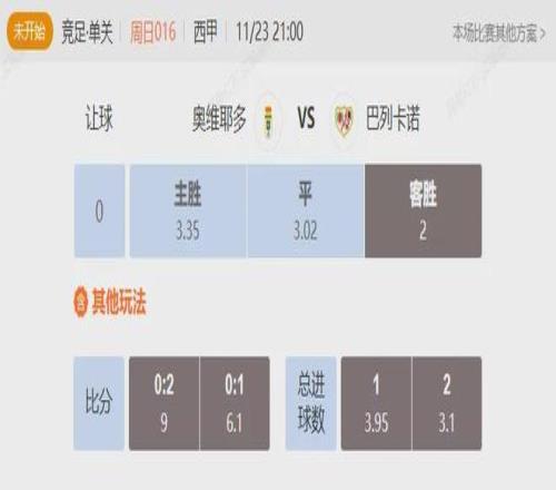 市場數(shù)據(jù)開出皇家奧維耶多0.25球的受讓,對巴列卡諾太過低估,目前數(shù)據(jù)持續(xù)右移,有調(diào)整跡象,后市升檔可能性存在,回歸理性。這場主任選成單關(guān),不會太簡單,勝平負(fù)對應(yīng)3.25/3/2.05,客勝位置不算低,信心這么足,有些刻意。