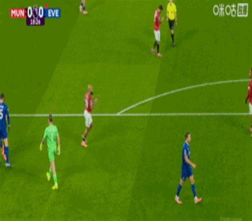 曼聯(lián)上半場僅有的威脅來自隊(duì)長B費(fèi)的一腳遠(yuǎn)射,被埃弗頓的英格蘭國門皮克福德?lián)涑?。這樣的場面,也是這位「人來瘋」守門員最喜歡的,他開啟了神撲模式。