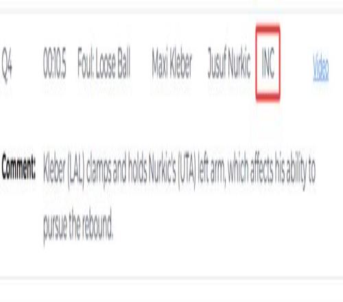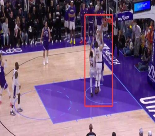 第一次漏判發(fā)生在距離比賽結(jié)束還有10.5秒,湖人球員克勒貝爾夾住并按住爵士球員努爾基奇的左臂,影響其爭(zhēng)搶籃板的能力。這是一次漏吹的搶籃板犯規(guī),湖人獲利,爵士吃虧。