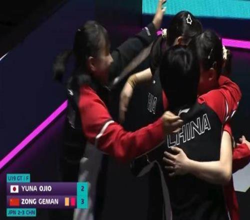 國際乒聯(lián)世青賽U19女團(tuán)決賽,中國隊3比2驚險擊敗日本隊奪得冠軍。第一盤:縱歌曼2比3青木咲智;第二盤:覃予萱3比0小鹽悠菜;第三盤:姚睿軒3比0高森愛央;第四盤:覃予萱0比3青木咲智;第五盤:縱歌曼3比2小鹽悠菜。