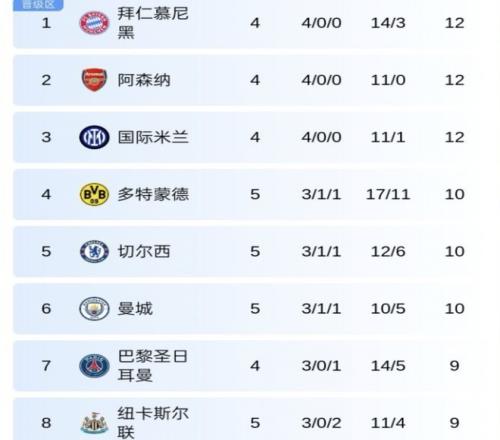 英超6隊(duì)參加本賽季歐冠,目前排名前8的英超球隊(duì)有阿森納、切爾西、曼城以及紐卡。反觀西甲球隊(duì),5隊(duì)躋身歐冠,皇馬3勝1負(fù)排第9,巴薩2勝1平2負(fù)第15,馬競(jìng)2勝2負(fù)第20,畢爾巴鄂競(jìng)技1勝1平3負(fù)第28,比利亞雷亞爾1平4負(fù)排名倒數(shù)第3。