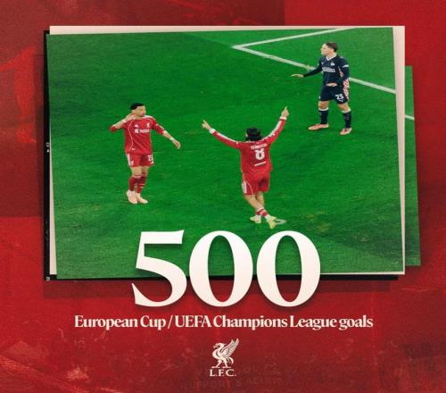 據(jù)統(tǒng)計,這是利物浦隊史歐洲冠軍杯/歐冠聯(lián)賽第500球。