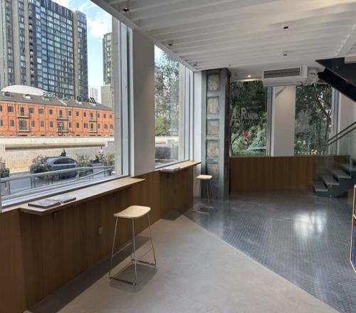 上海人氣跑團DarkRunners最近也在蘇州河畔南蘇州路開設(shè)了一家跑步文化空間All By Runners。主理人坦言,看中此地是因為戶外有近200平米的廣場可供跑者在運動前后安全熱身和拉伸,臺階和門口斜坡也便于跑團合影。空間內(nèi)盡可能壓縮商品零售占比,讓跑者能舒適自在地停留和補給。