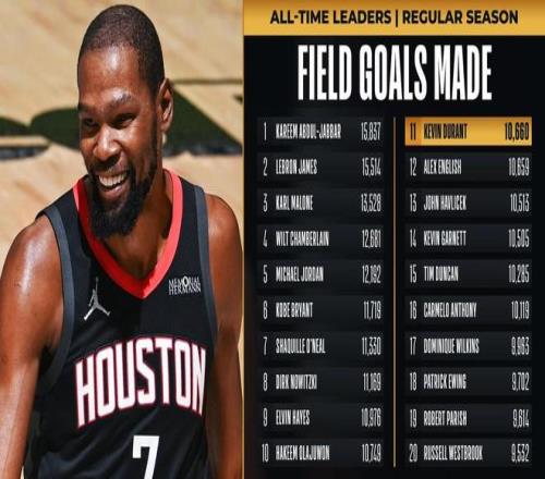 此外,杜蘭特還創(chuàng)下了紀(jì)錄。杜蘭特命中本場(chǎng)第2球之后,其生涯命中數(shù)來到10660個(gè),正式超越了阿歷克斯·英格利什,升至NBA歷史命中數(shù)榜的第11位。