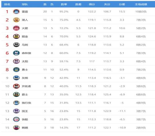 今日比賽后快船、國王排名互換,其他西部球隊排名不變。