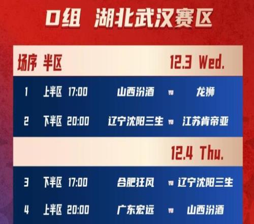 根據(jù)抽簽分組的情況,廣東隊和山西隊、廣州龍獅隊、江蘇隊、遼寧隊以及合肥狂風隊(NBL)共6支球隊在D組。今年的杯賽小組賽分為上下兩個半?yún)^(qū),廣東隊和廣州龍獅隊、山西隊在上半?yún)^(qū);遼寧隊和江蘇隊、合肥狂風隊在下半?yún)^(qū);今天首個比賽日廣東隊輪空,沒有比賽任務,12月4日晚上20:00廣東隊對陣山西隊,12月5日晚上20:00廣東隊對陣廣州龍獅隊。然后進行上下半?yún)^(qū)的交叉比賽,每個小組的前兩名球隊出線進入俱樂部杯賽的決賽階段。