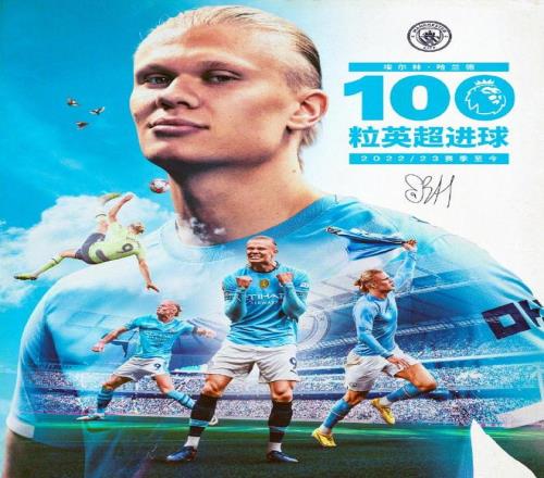 破門之后,哈蘭德迎來了里程碑時刻,就是收獲個人英超第100球,成為了33年史上最快達(dá)成英超百球的球員。