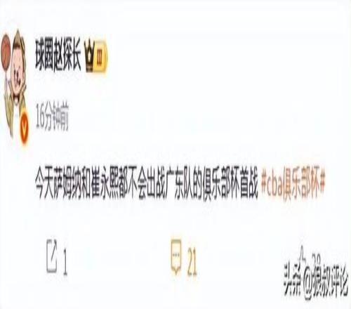 根據(jù)媒體人“球圈趙探長”報道,今天薩姆納和崔永熙都不會出戰(zhàn)廣東隊的俱樂部杯首戰(zhàn)。