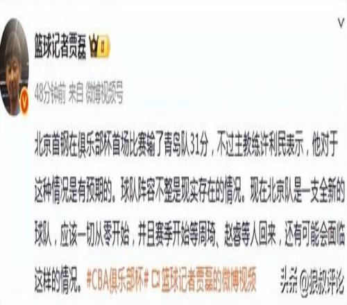 計(jì)劃內(nèi)徐利民:北京男籃輸青島31分,這種情況是有預(yù)期的