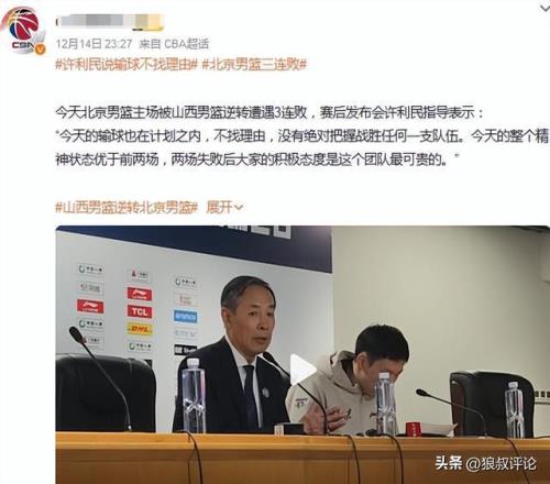 上賽季,北京男籃短時(shí)間內(nèi)遭到山西雙殺,以及不敵廣東的新聞發(fā)布會(huì),許利民的采訪提到三連敗仍在計(jì)劃內(nèi)。