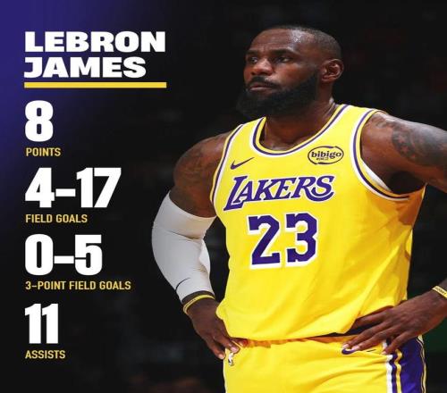原以為,東契奇不在,詹姆斯說不定能沖一下本賽季的第一次30+,結(jié)果全場(chǎng)下來,詹姆斯投籃17中4,三分5中0,沒有拿到一記罰球,只得到8分。