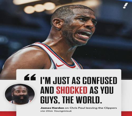 之前哈登回應(yīng)保羅突然和快船分手一事時,說道:“睡醒看到新聞,我跟全世界一樣感到震驚困惑?!?/p>