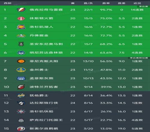 北京時間12月6日,今日的NBA常規(guī)賽結(jié)束了所有比賽,我們一起看看西部的最新排名變動!