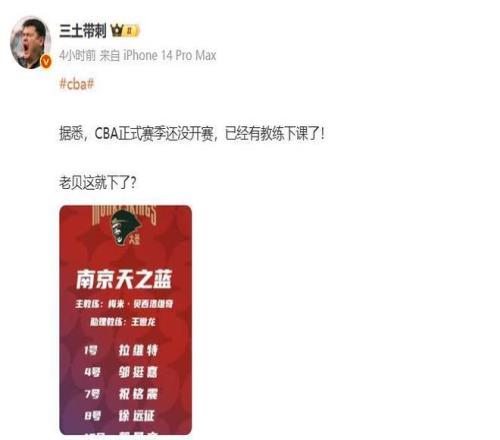 南京同曦隊方面,上賽季在外籍主教練貝西諾維奇的帶領下球隊首次進入季后賽,不過在最近幾天的CBA俱樂部杯賽中同曦隊三戰(zhàn)全敗,先后輸給北控男籃,NBL香港金牛隊,以及寧波隊,三場比賽凈輸30分。尤其是大比分輸給CBA聯(lián)賽墊底的寧波隊,這讓球隊的管理層十分不滿,也是貝帥下課的重要導火索。
