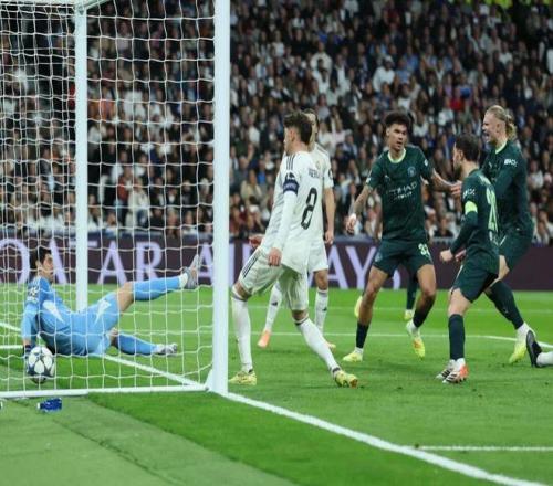 賽前,主場作戰(zhàn)的皇馬便遭打擊,頭號射手基利安·姆巴佩身體狀況僅能支撐其被列進(jìn)替補(bǔ)名單,全場比賽他沒能登場。不過,作為歐冠之王,皇馬開場后迅速占得先機(jī),維尼修斯的突破和巴爾韋德的定位球讓曼城門前風(fēng)聲鶴唳,看似曼城頂住了皇馬開場的猛攻之時,第28分鐘卡雷拉斯后場搶斷,貝林厄姆斜塞到右路,羅德里戈殺入禁區(qū)小角度低射遠(yuǎn)角得手,幫助皇馬1-0取得領(lǐng)先。