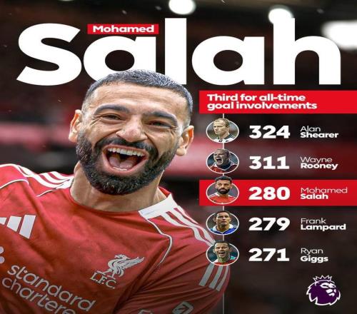 這使得他薩拉赫超越蘭帕德(279),獨占英超歷史參與進球榜第三,僅次于阿蘭-希勒(324)和魯尼(311)。