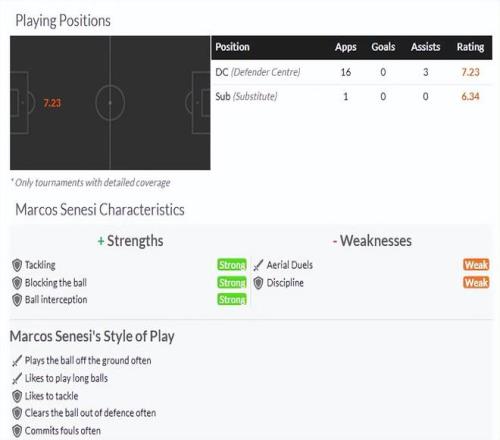 塞內(nèi)西身高1米84,高球爭(zhēng)奪在英超是不占優(yōu),不過來(lái)到西甲后應(yīng)該還是夠用。他擅長(zhǎng)攔截球,對(duì)于線路的預(yù)判還是不錯(cuò)的。