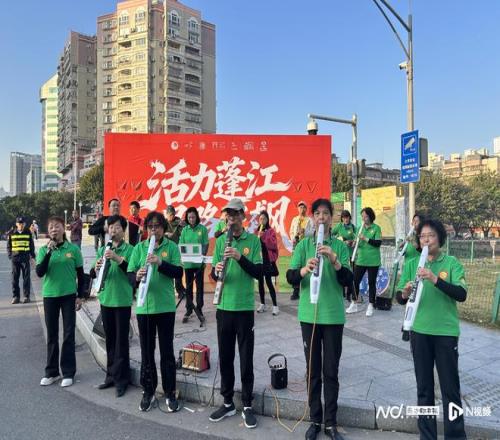 港口一路氛圍點則是奏響奮進之歌,江門老干部大學陽光樂團的成員帶來電吹管合奏《氣勢如虹》,激昂旋律搭配劉德華《中國人》《一起走過的日子》等經(jīng)典歌曲,奏響了拼搏與堅守的號角,用不老熱愛為江馬喝彩。