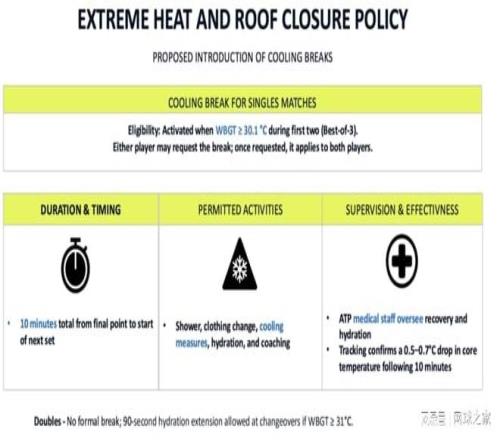 ATP 董事會已批準(zhǔn)自 2026 賽季起實(shí)施新的高溫規(guī)則。主要條款如下: