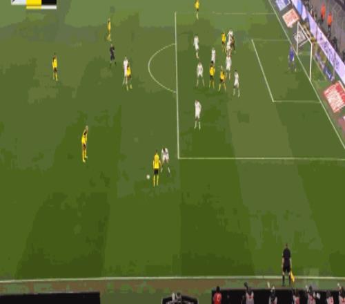 第22分鐘,門(mén)興門(mén)將尼古拉斯玩火差點(diǎn)被阿德耶米將球斷下。第29分鐘,又是阿德耶米,這次他后排插上小禁區(qū)前沿?fù)岦c(diǎn)近距離大力抽射,尼古拉斯奮力將球撲出。第41分鐘,門(mén)興中路快攻,雷納禁區(qū)右側(cè)前沿接球稍作調(diào)整大力抽射,皮球擊中防守球員稍稍偏出門(mén)柱出了底線。易邊再戰(zhàn)多特還是占據(jù)場(chǎng)上優(yōu)勢(shì),第55分鐘,多特前場(chǎng)圍攻,布蘭特點(diǎn)球處頭球擺渡,吉拉西小禁區(qū)內(nèi)接球回傳,一片混戰(zhàn)中吉拉西門(mén)線前補(bǔ)射空門(mén)得手,只不過(guò)他第一下接球的時(shí)候越位在先,進(jìn)球被吹掉。