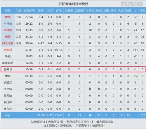 開拓者102-110輸給活塞。開拓者后衛(wèi)拉楊-呂佩爾替補出戰(zhàn)10分36秒,2投0中,得到0分0板0助0斷0帽2犯規(guī),正負值-1。過去4場比賽,呂佩爾一共打了27分鐘,合計3投0中,得分、籃板、助攻、搶斷和蓋帽,五項數(shù)據(jù)全是0!