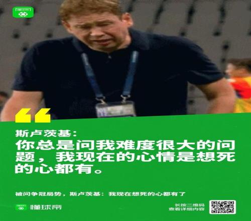 在山東打入第三球后,申花主帥斯盧茨基甚至在場邊流下眼淚。賽后發(fā)布會(huì)上,被記者問及爭冠形勢時(shí),斯盧茨基崩潰地表示無法回答這個(gè)問題,因?yàn)樽约合胨赖男亩加辛恕H绱酥甭识行缘难哉?,在教練界?shí)為罕見。
