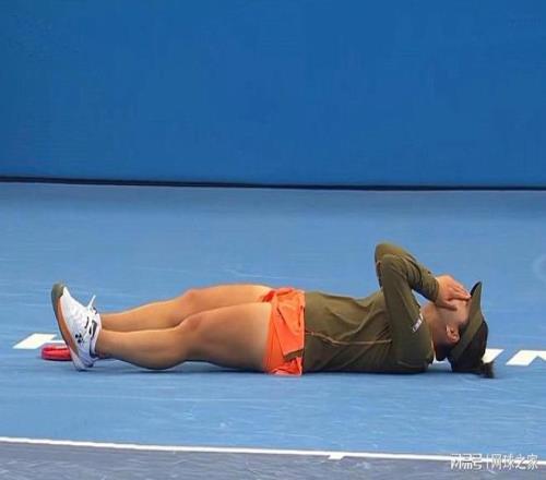 最后來(lái)猜一猜認(rèn)一認(rèn)。下面這張圖片是一位球員獲勝之后倒地慶祝。不作提示,您能認(rèn)出她是誰(shuí)嗎?