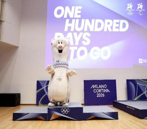 10月29日,米蘭-科爾蒂納冬奧會(huì)吉祥物“蒂娜”與冬奧會(huì)頒獎(jiǎng)臺(tái)合影。 當(dāng)日,距離2026年米蘭-科爾蒂納冬奧會(huì)開幕式100天之際,意大利倫巴第大區(qū)政府在米蘭舉行慶?;顒?dòng)。 新華社發(fā)