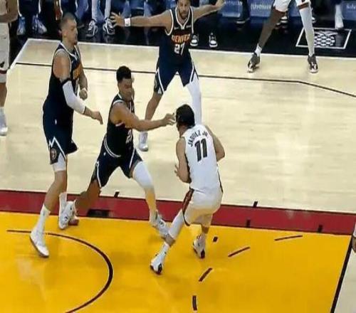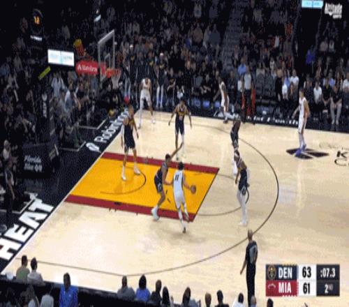 上半場,熱火和掘金各自打了一節(jié)好球。熱火先發(fā)制人,掘金是追分的一方。次節(jié)最后時刻,掘金已經(jīng)將比分追上,但最后一個防守回合突遭變故。