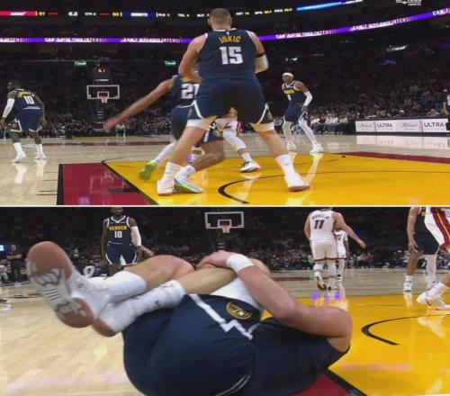 次節(jié)末約基奇被隊友誤傷,疑似膝蓋過度伸展,直接退出了比賽,最終123-147不敵熱火。