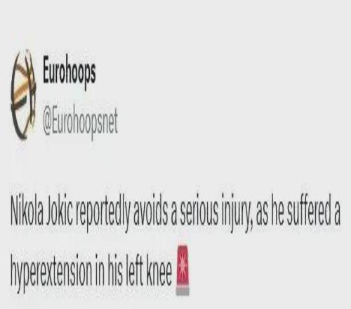塞爾維亞媒體Meridian Sport從掘金內(nèi)部人士處非正式獲悉,約基奇的傷勢屬于膝蓋過度伸展,并未造成嚴(yán)重?fù)p傷。