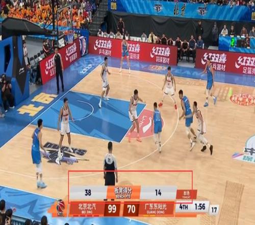 第一個(gè)好消息——曾凡博復(fù)出后狀態(tài)火熱。這一場比賽北京首鋼贏得有點(diǎn)狠了,出乎不少球迷預(yù)料,賽前很多球迷預(yù)測,北京這場少了陳盈駿,替補(bǔ)陣容沒人帶可能會(huì)很難打,趙睿還會(huì)像上一輪打廣廈那樣打得很累,但沒想到昨晚北京不僅首發(fā)打得好,替補(bǔ)也更是完勝廣東,第四節(jié)還剩2分鐘階段,當(dāng)時(shí)北京已經(jīng)取得99-70領(lǐng)先,此時(shí)導(dǎo)播在屏幕下方打出了廣東和北京兩隊(duì)板凳得分對比,北京38-14遙遙領(lǐng)先廣東,說明這一場北京首發(fā)和替補(bǔ)都同樣出色。