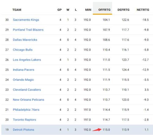 活塞本賽季的進(jìn)攻效率排名第八,但最近的四場(chǎng)比賽下滑到聯(lián)盟第19,防守效率活塞本賽季聯(lián)盟第二,最近四場(chǎng)下滑到聯(lián)盟第八,防守效率下滑沒有進(jìn)攻效率下滑的多,活塞本就是依靠防守的球隊(duì),進(jìn)攻完完全全是CC一肩扛。