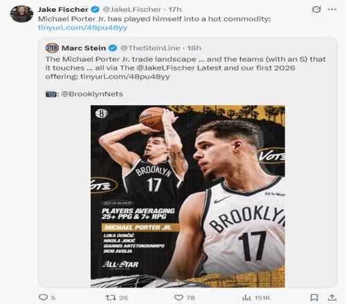 根據(jù)BR記者杰克-費(fèi)舍爾的報(bào)道,活塞正在努力的交易得到小邁克爾-波特,活塞不希望進(jìn)行過于激進(jìn)的行為,但用一個(gè)首輪簽+配平薪資換來一個(gè)場(chǎng)均25.8+7.5的出色得分手活塞還是有很大興趣,活塞管理層希望盡快走出23-24賽季14勝68負(fù)的陰霾。