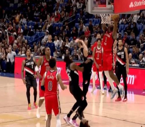 第四節(jié)決戰(zhàn),樂福連續(xù)投進3記三分,開拓者末節(jié)一波流領先鵜鶘21分。錫安飛身滑翔上籃連續(xù)打進,已經(jīng)砍下32分,鵜鶘還剩3分鐘落后開拓者14分??上r間不夠了,最終,開拓者122-109逆轉(zhuǎn)鵜鶘,送給對手6連敗。